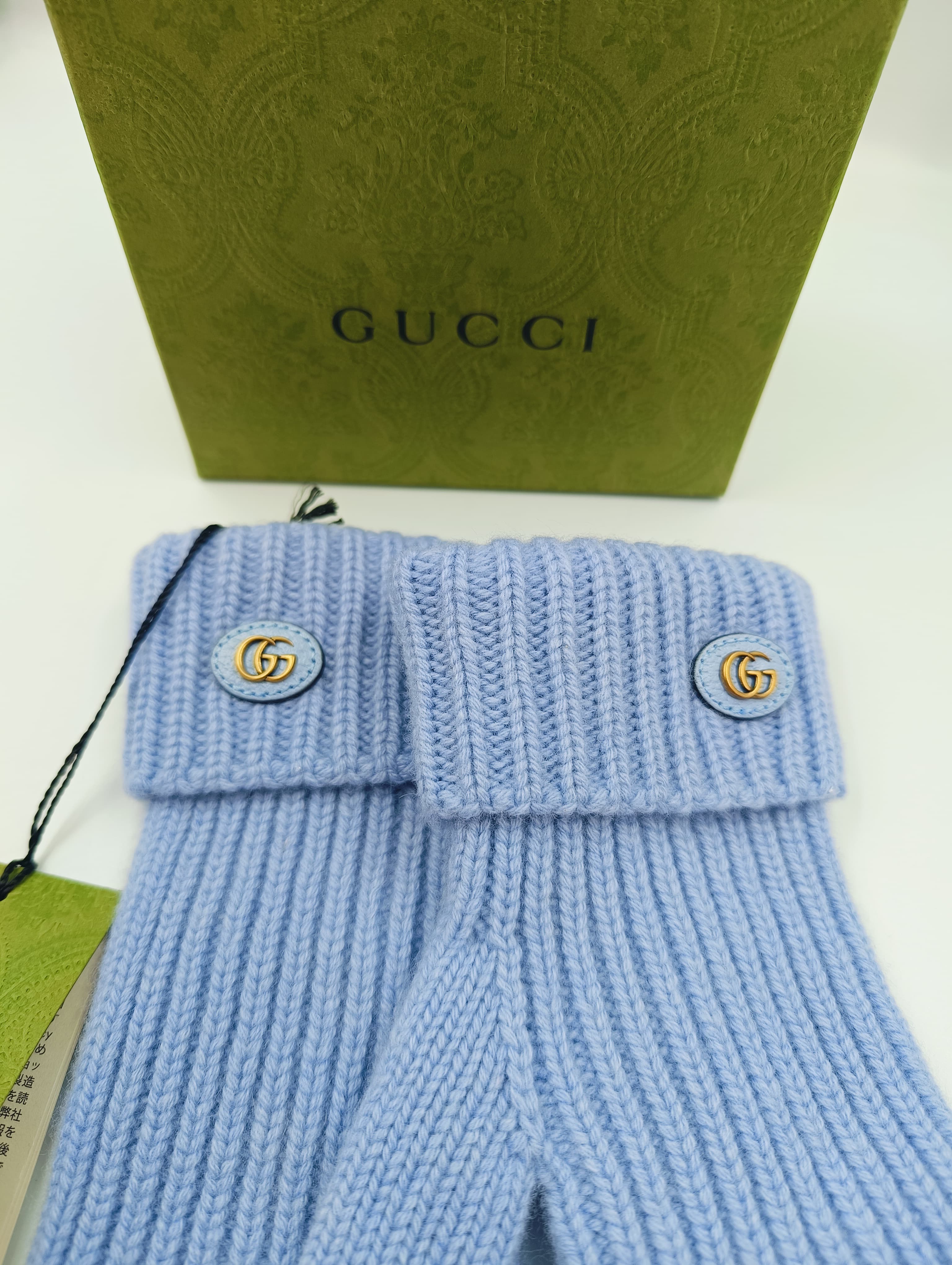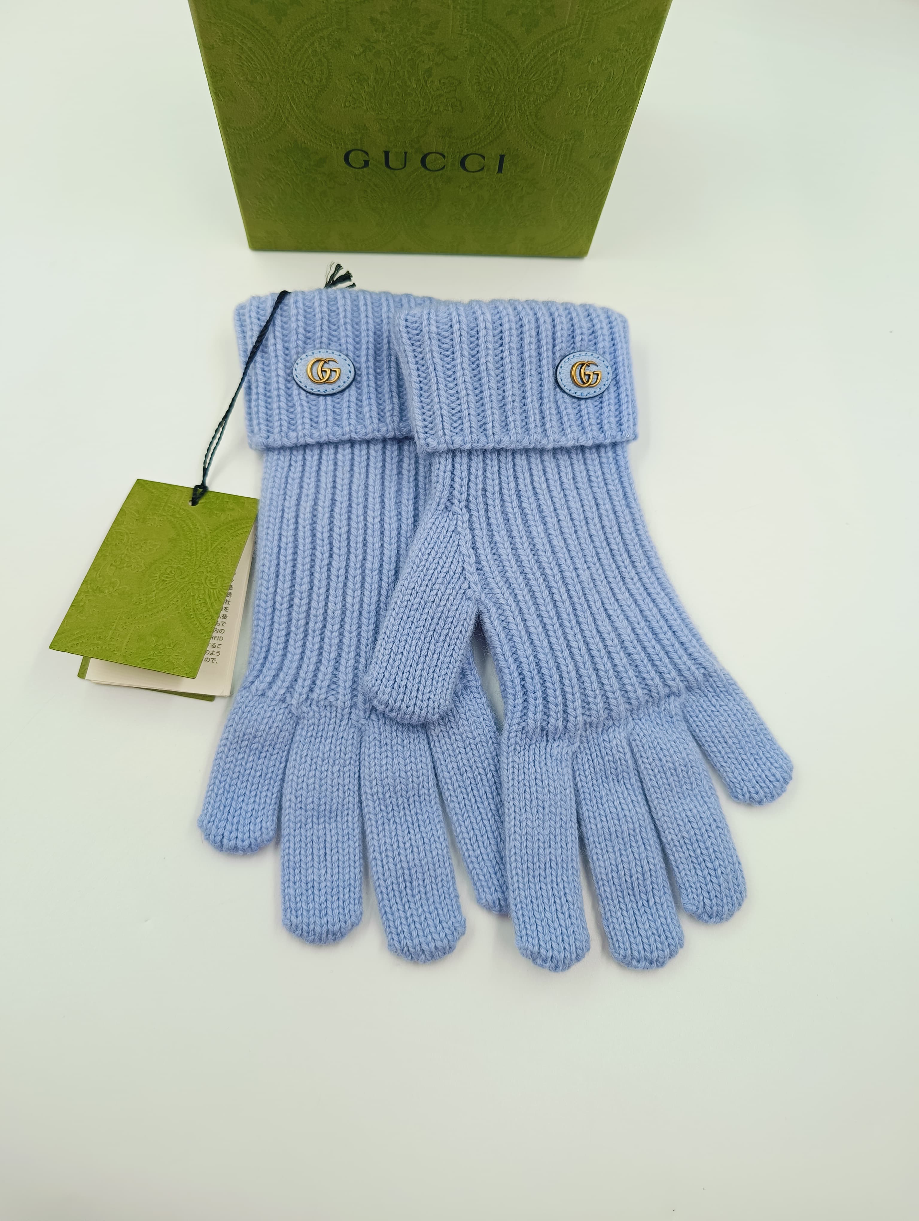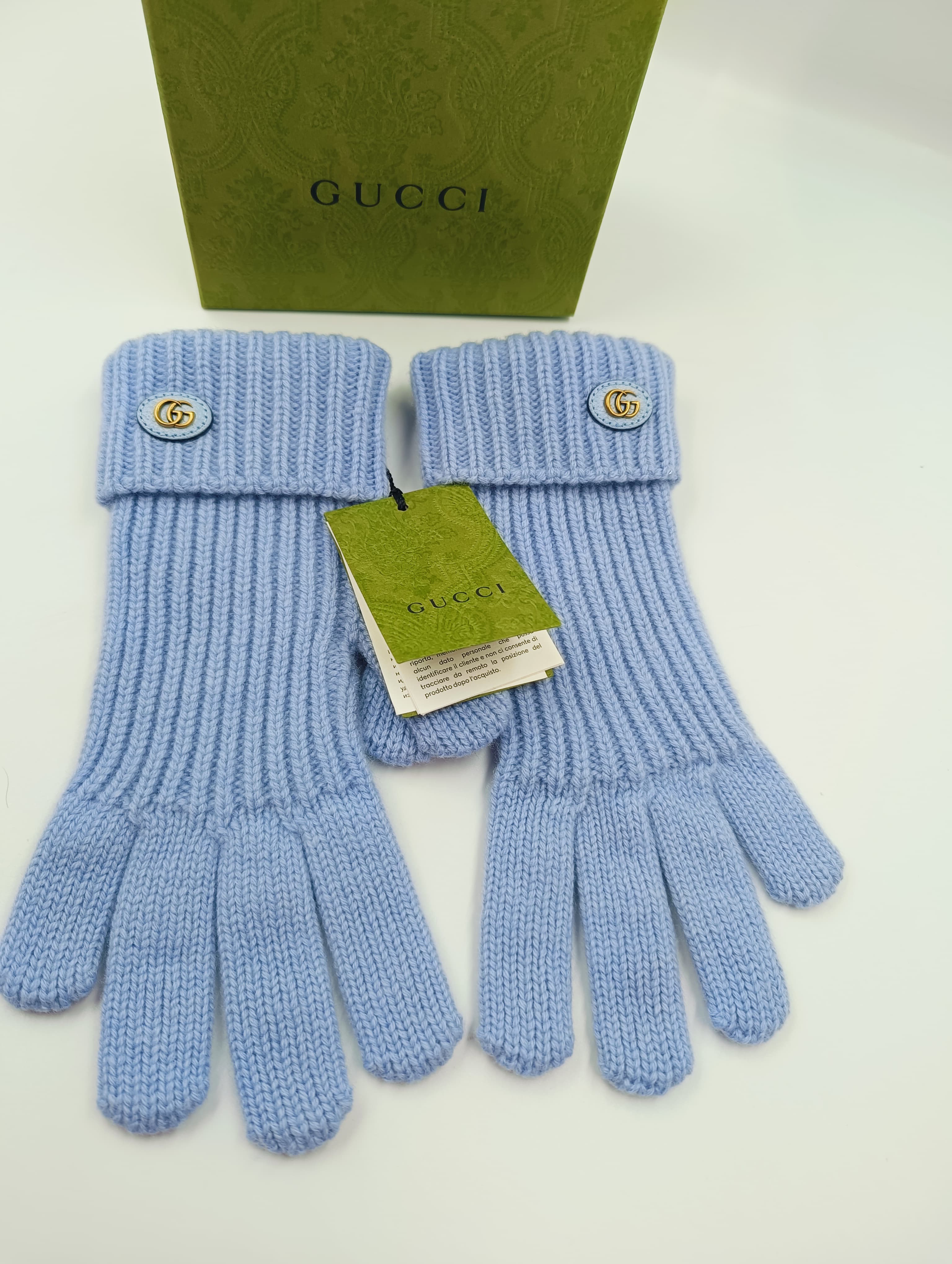 Guanti in lana e cashmere con pacht ovale in pelle doppia GG , taglia unica.