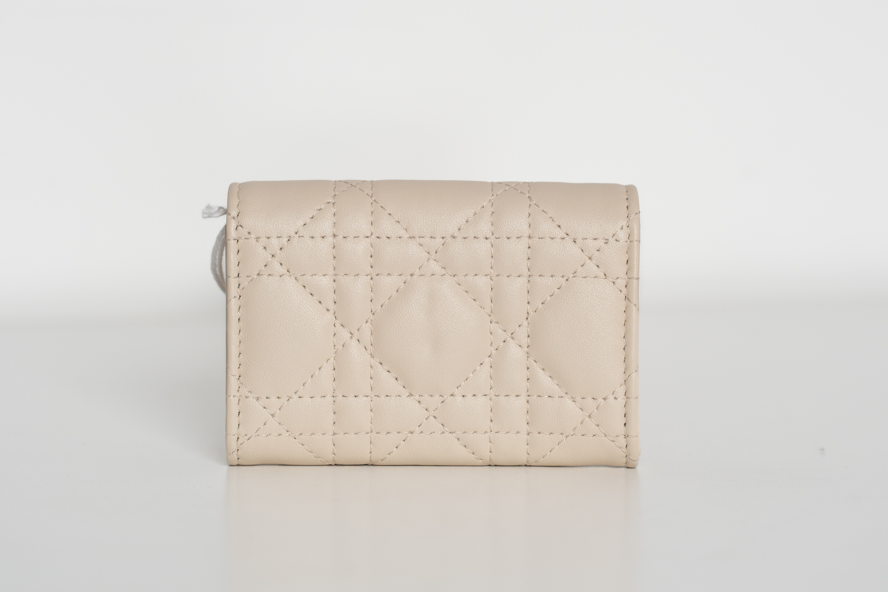 Portafoglio glycine Dior Jolie in pelle di agnello e impreziosito dalla firma CD con una perla in resina.