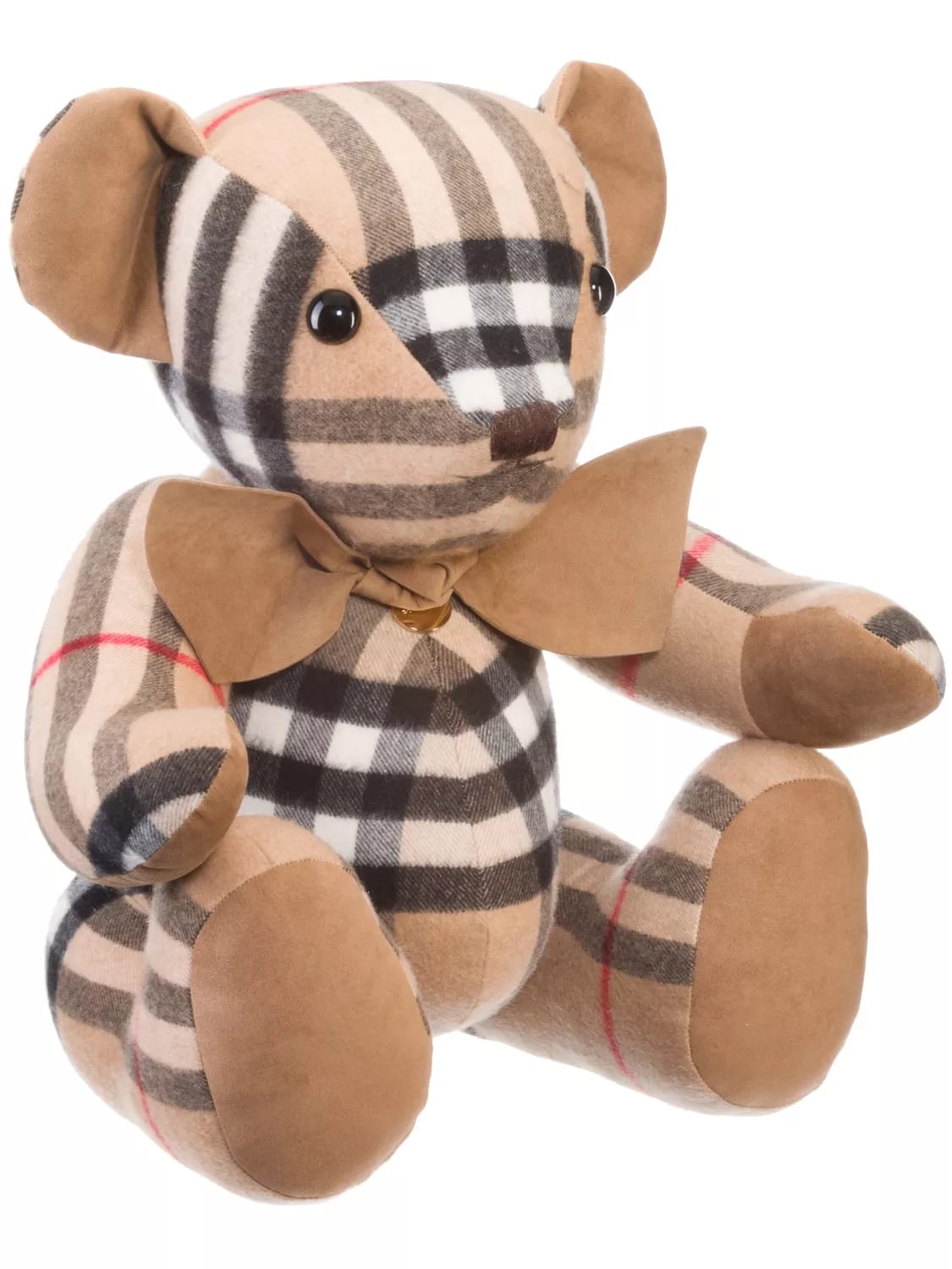 Orsetto Burberry beige realizzato in cashmere di alta qualità con il tipico motivo a quadri, orecchie grandi e morbide e graziosi occhietti. Questo straordinario orsetto per bambini e può anche essere posizionato in piedi grazie alle articolazioni del braccio e della gamba incorporate. L'orsetto fatto a mano e decorativo con accogliente tessuto in cashmere, imbottitura flessibile e ampio fiocco intorno al collo è un punto culminante nella stanza di ogni bambino.
