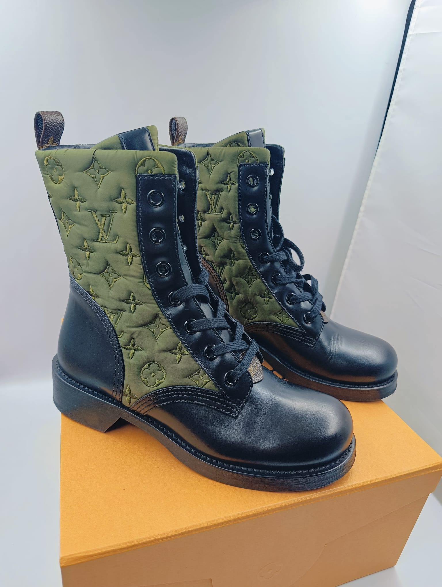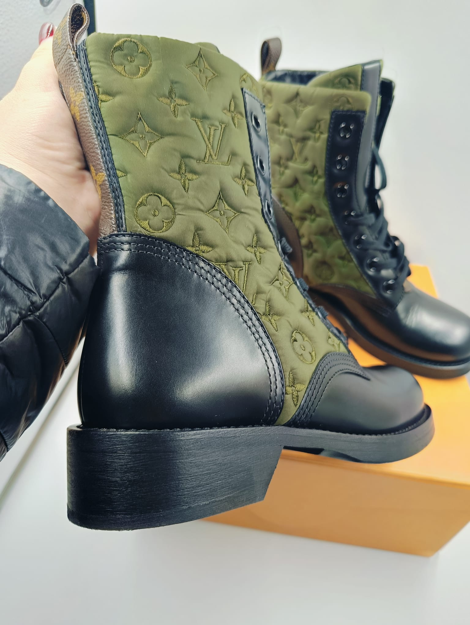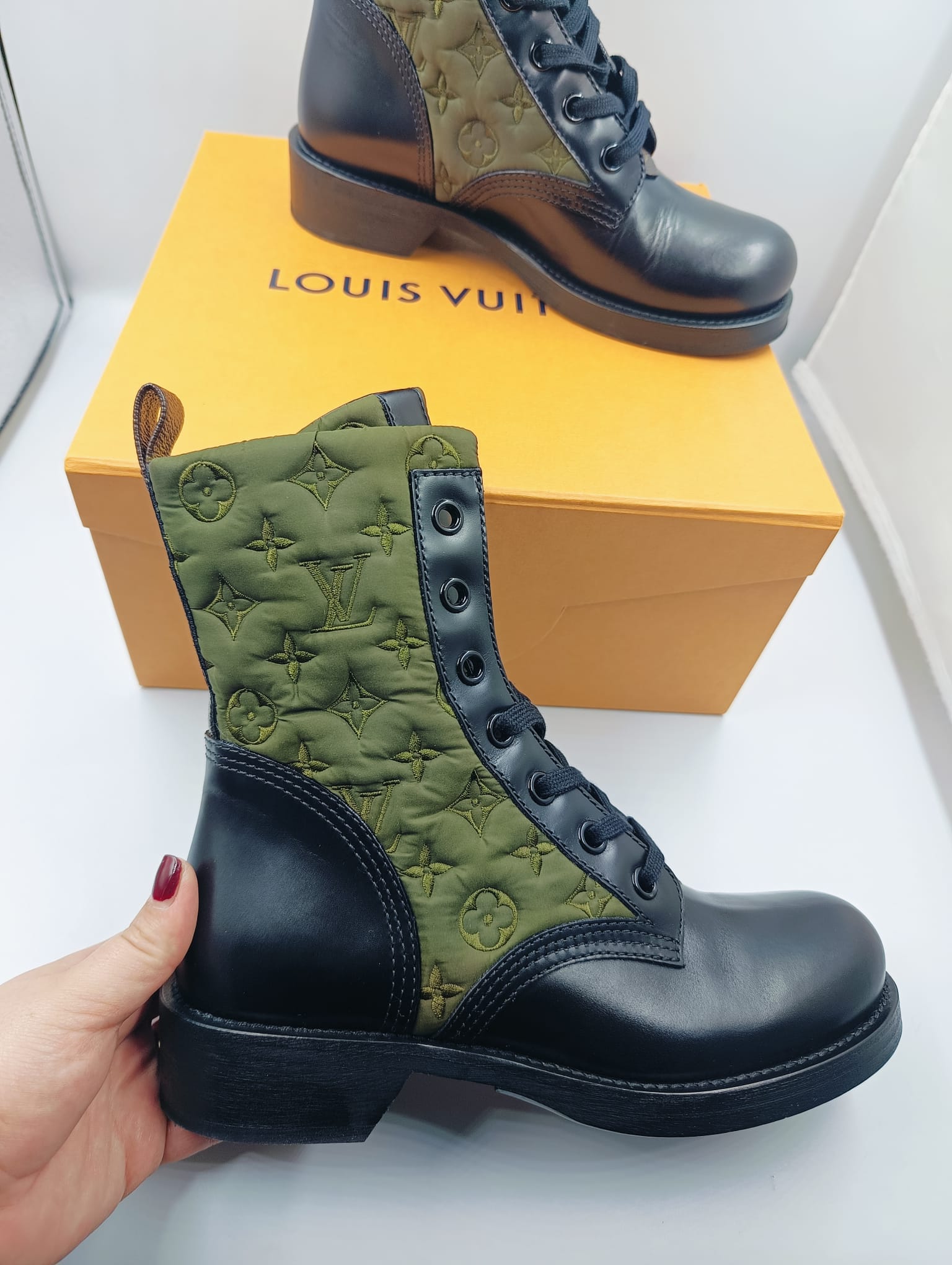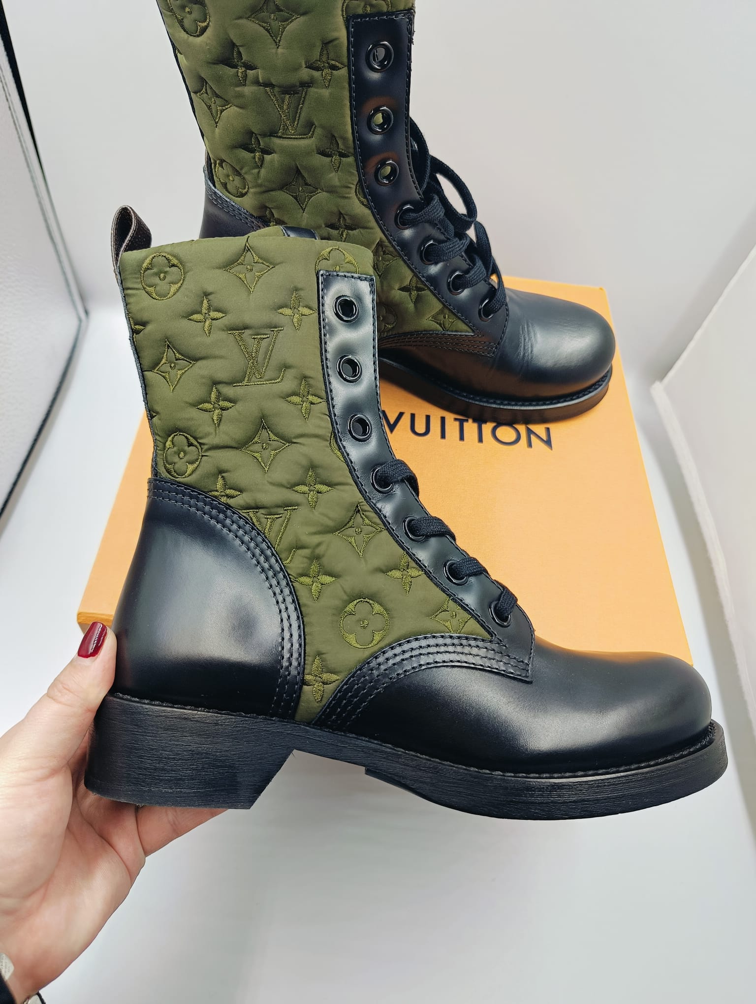 Stivali Luois Vuitton in tela e pelle , color kaki.