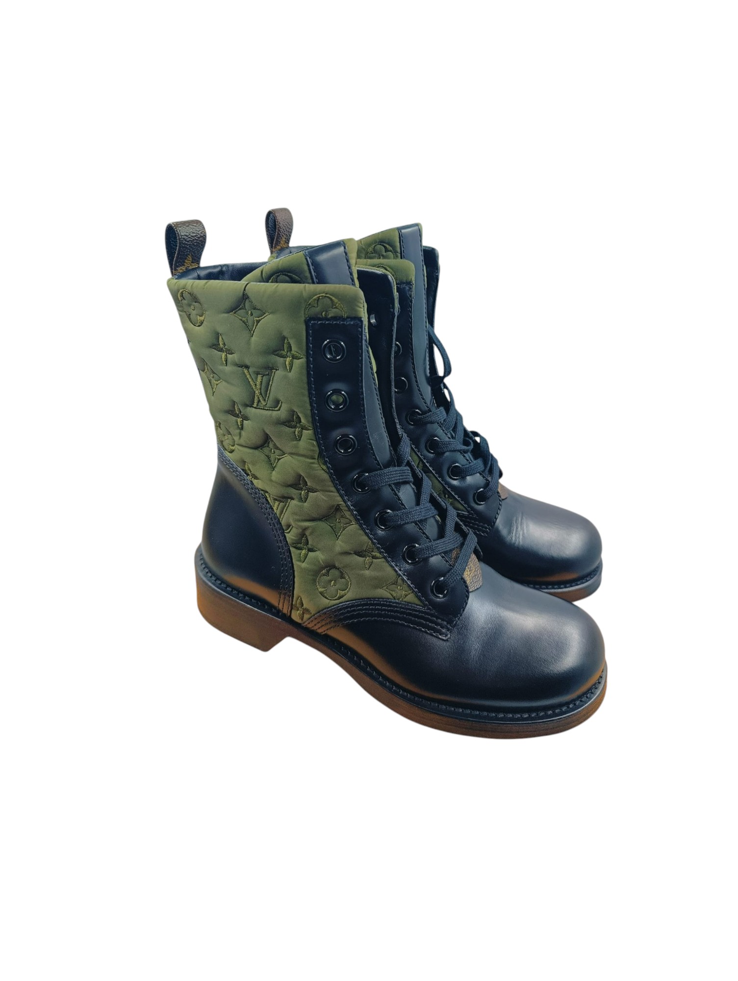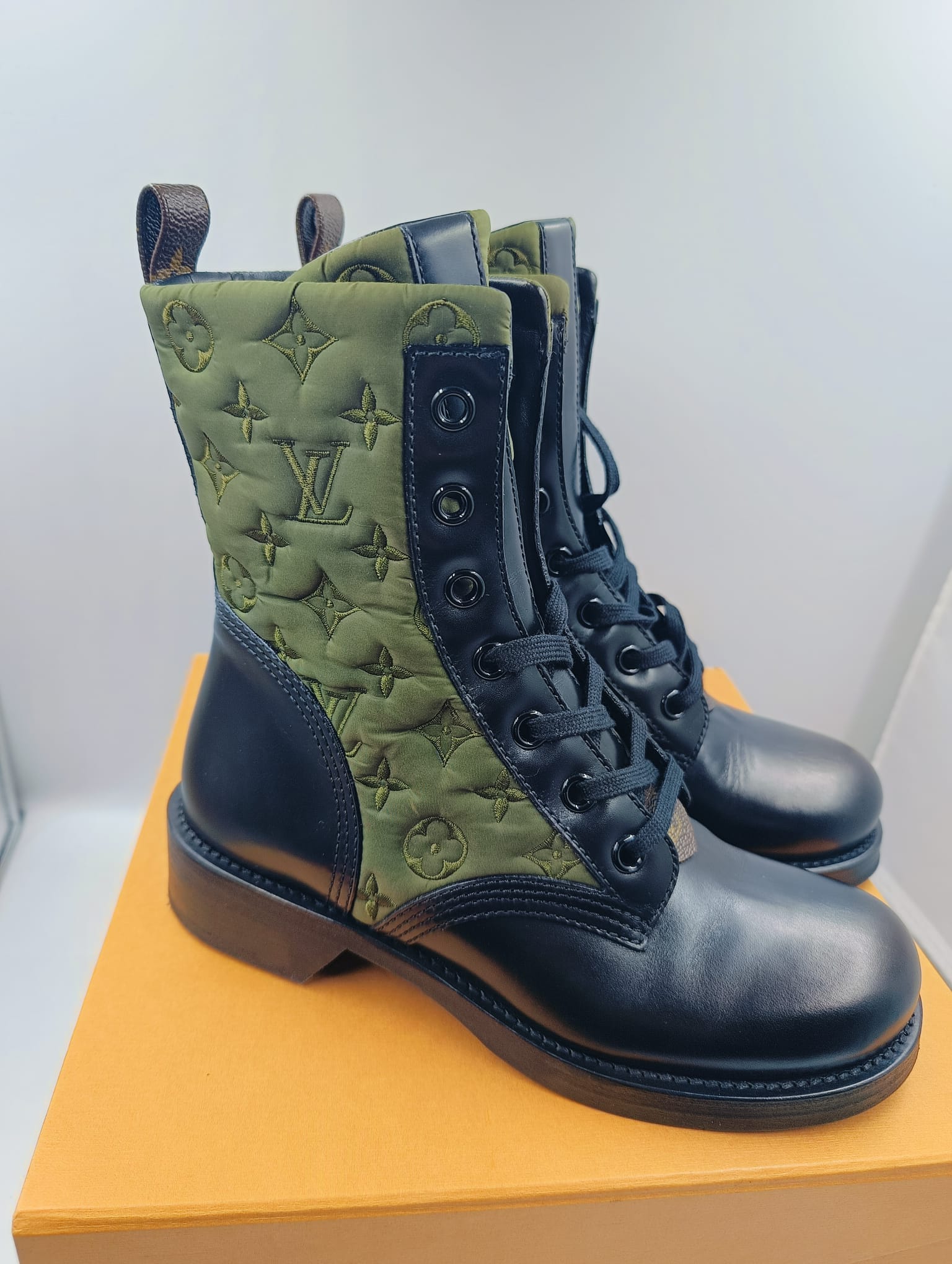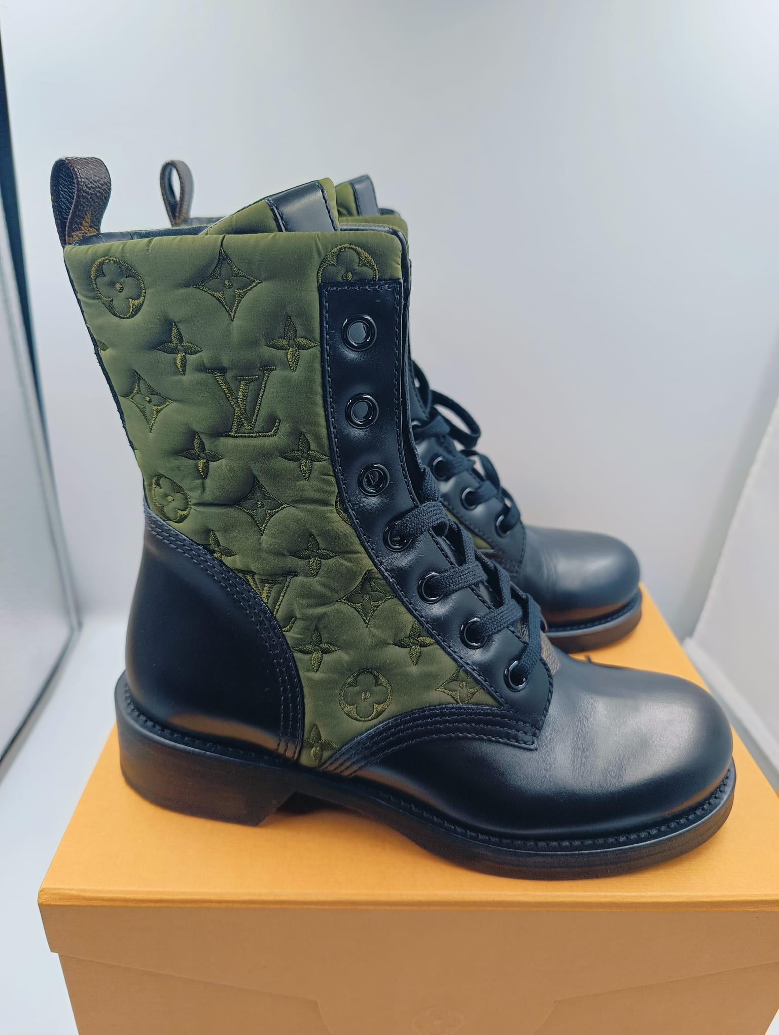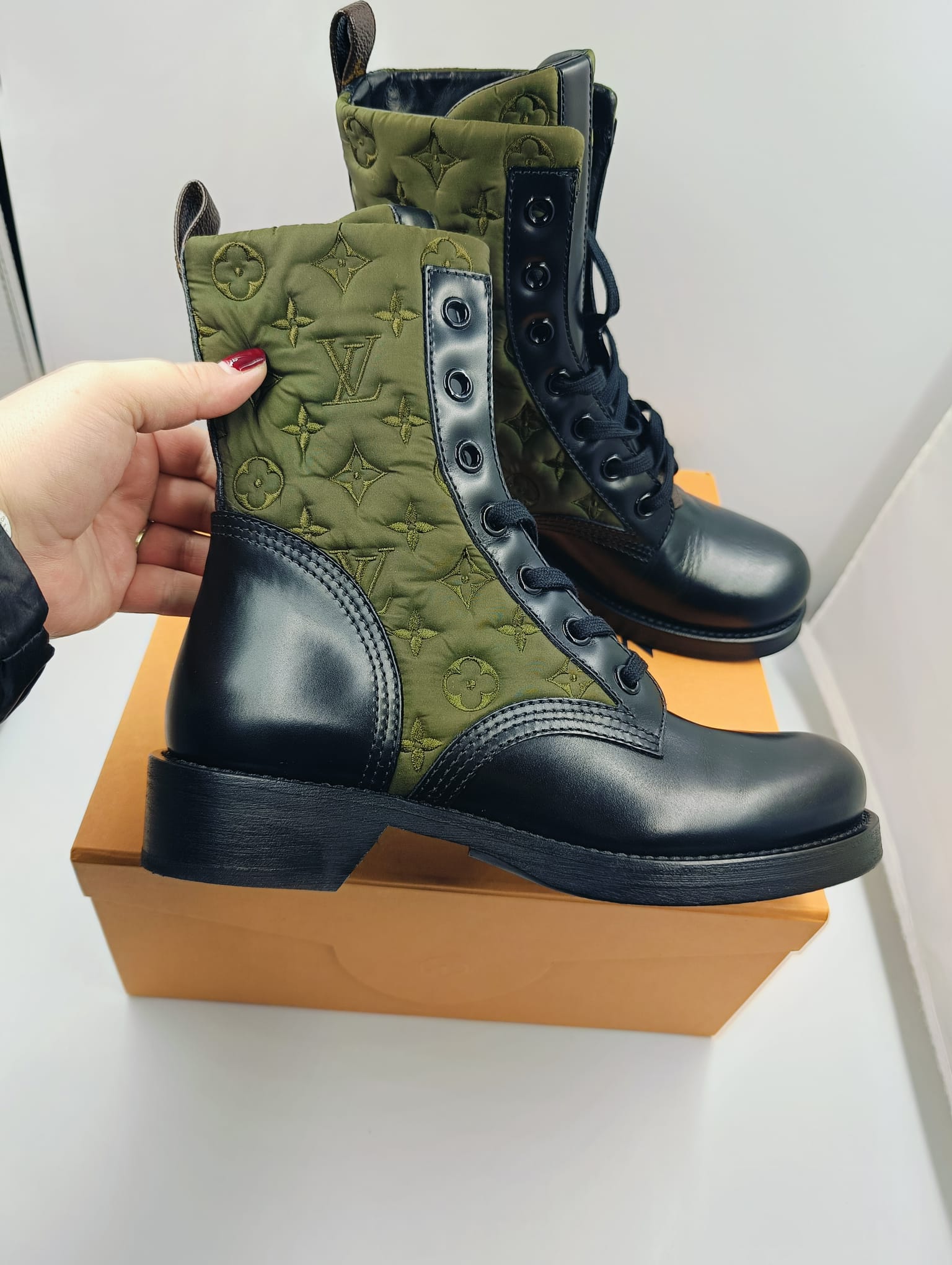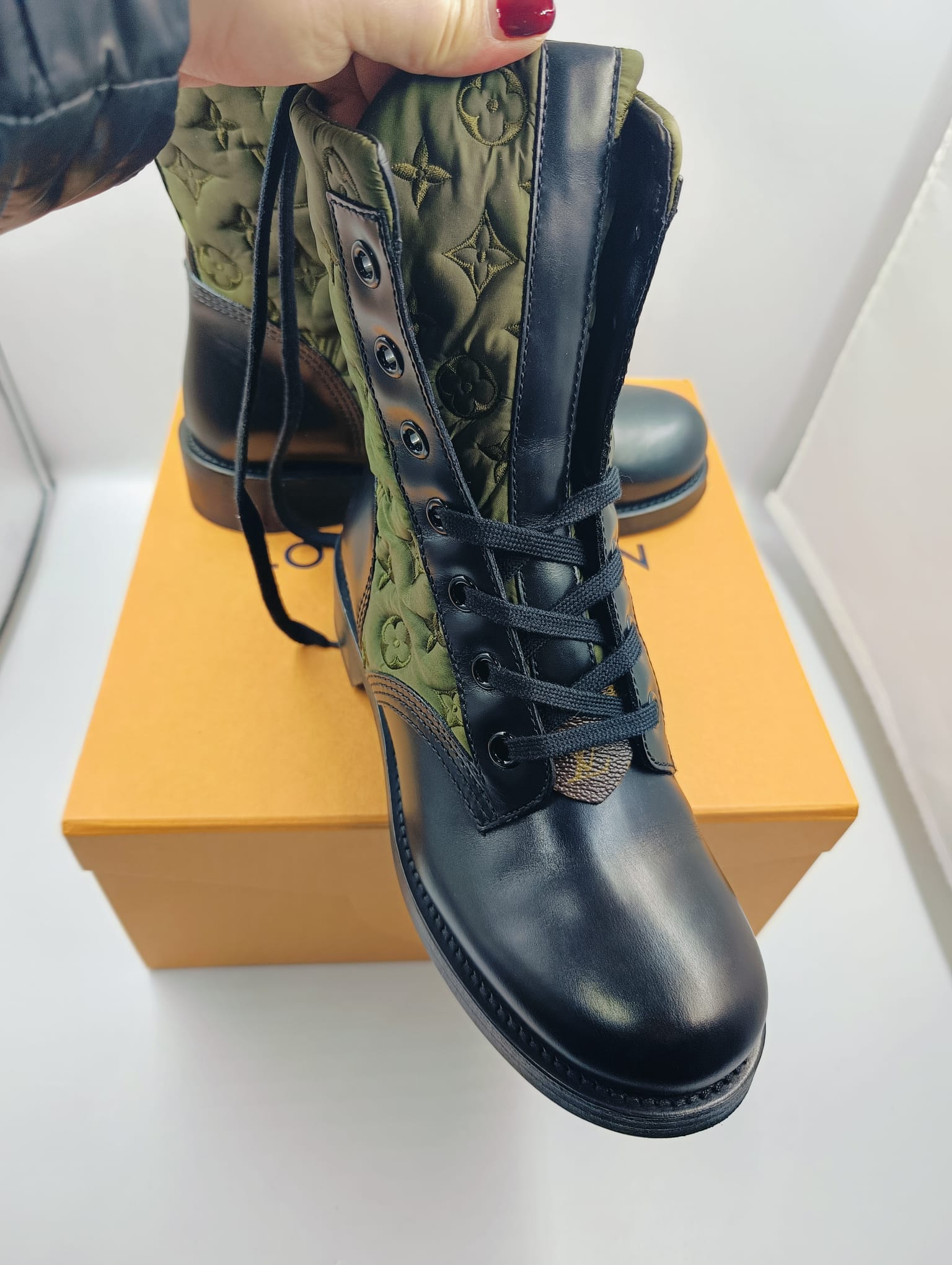 Stivali Luois Vuitton in tela e pelle , color kaki.