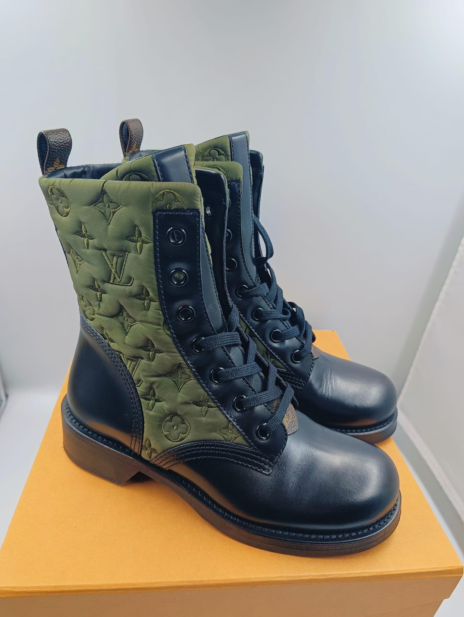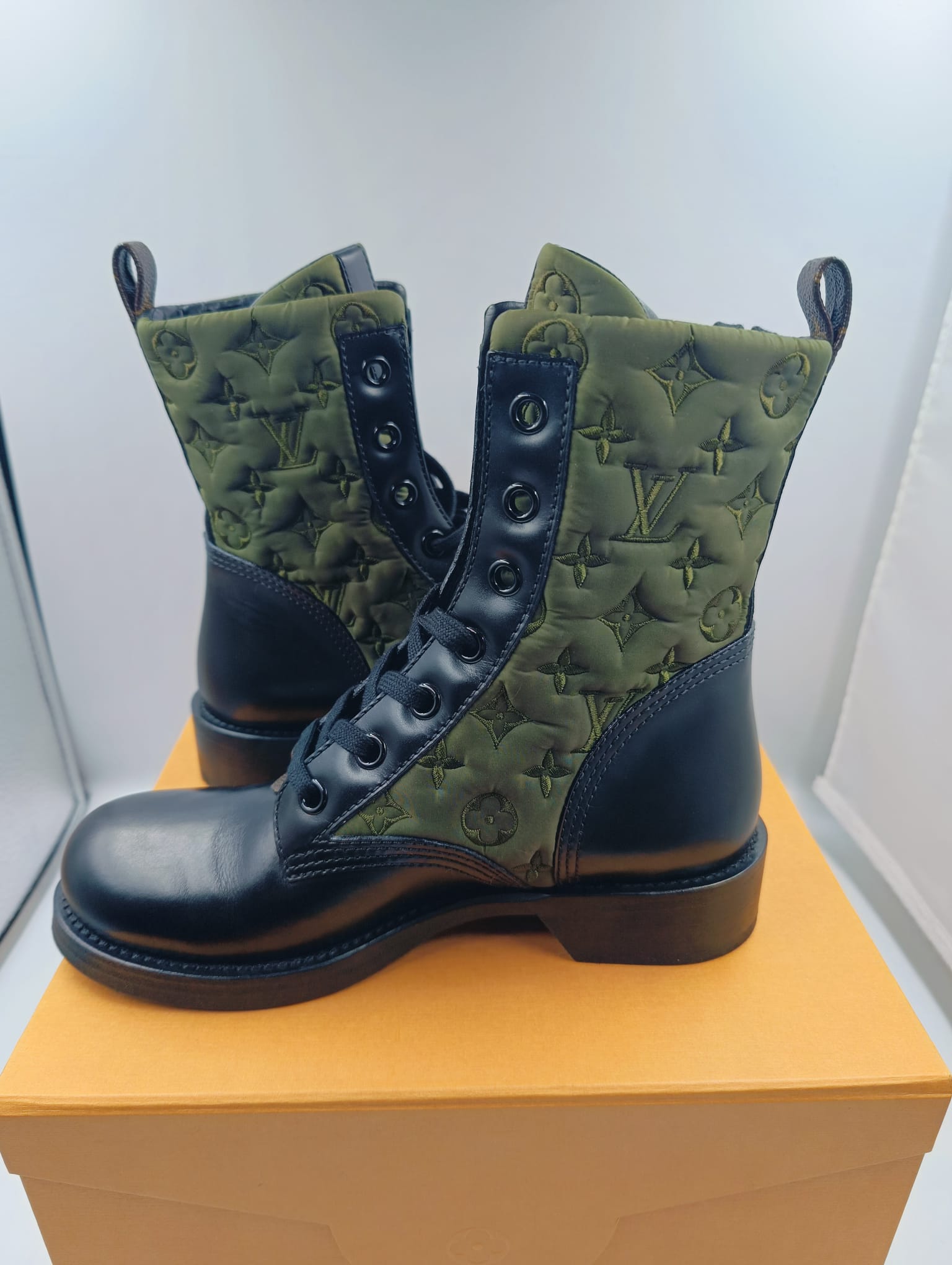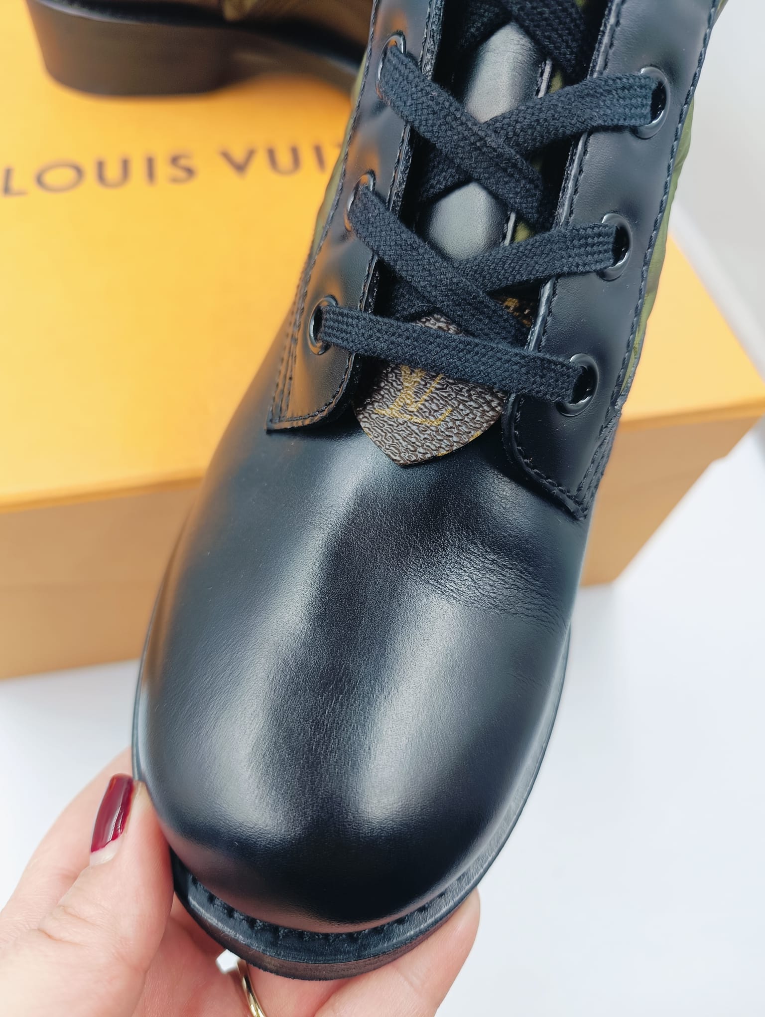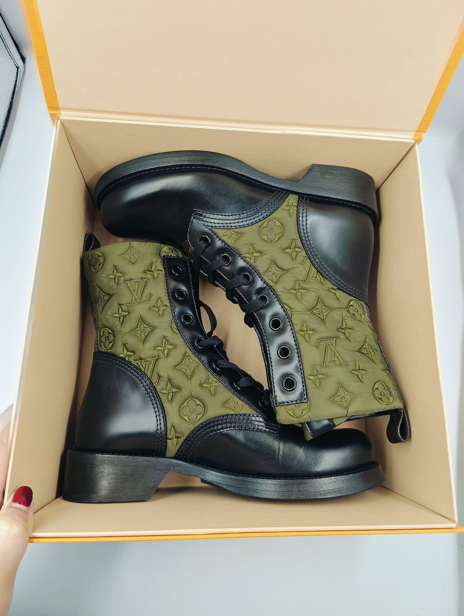 Stivali Luois Vuitton in tela e pelle , color kaki.