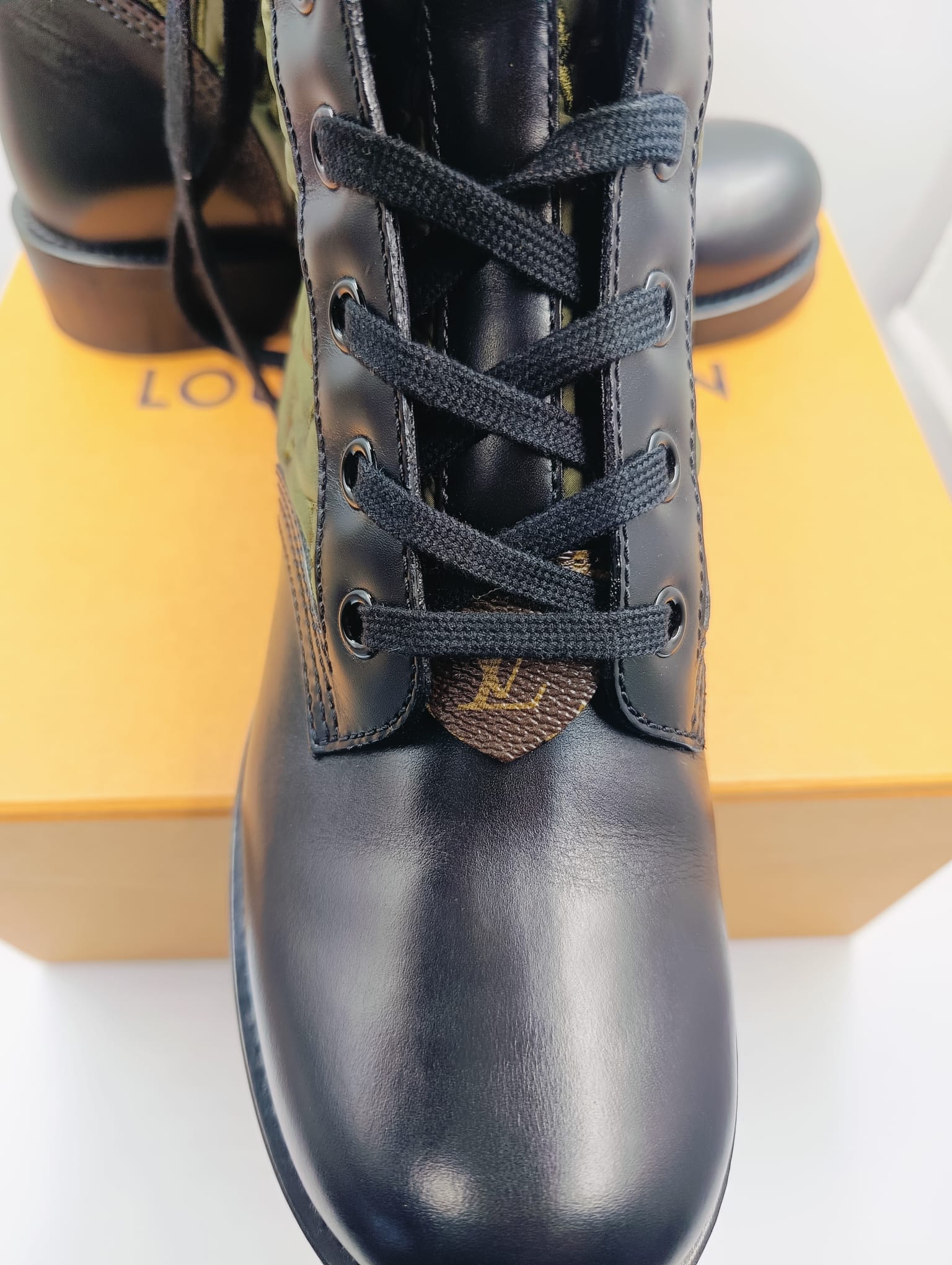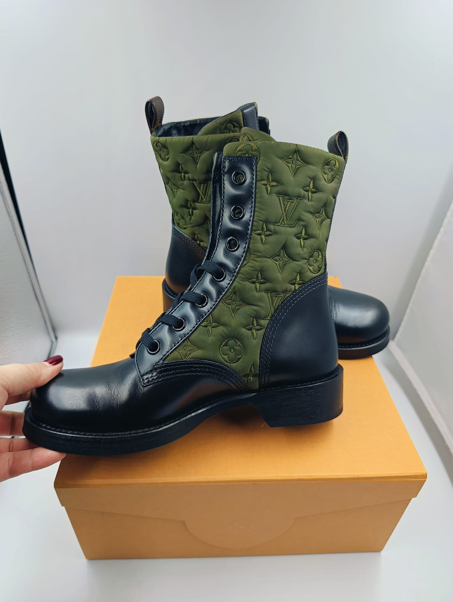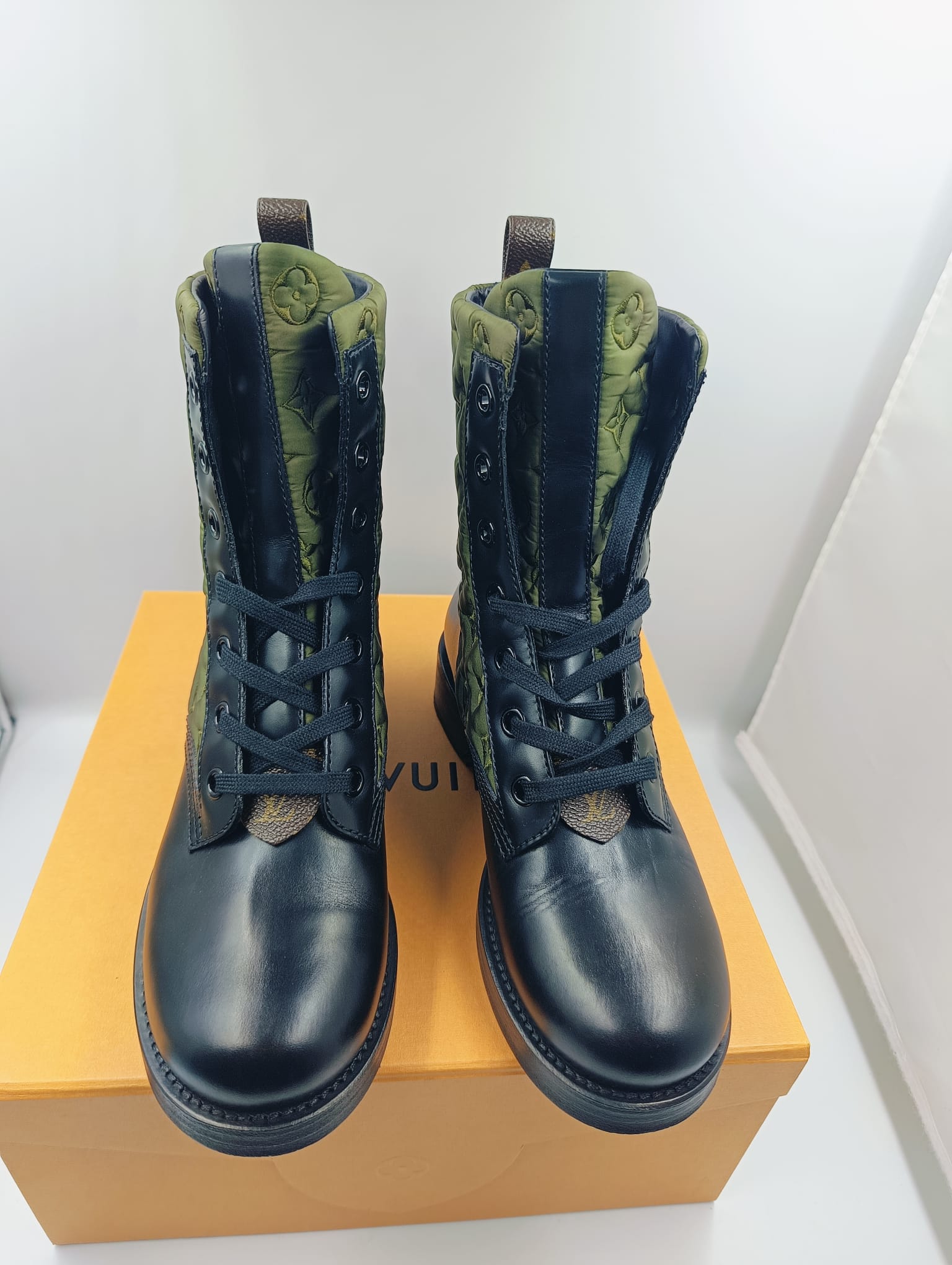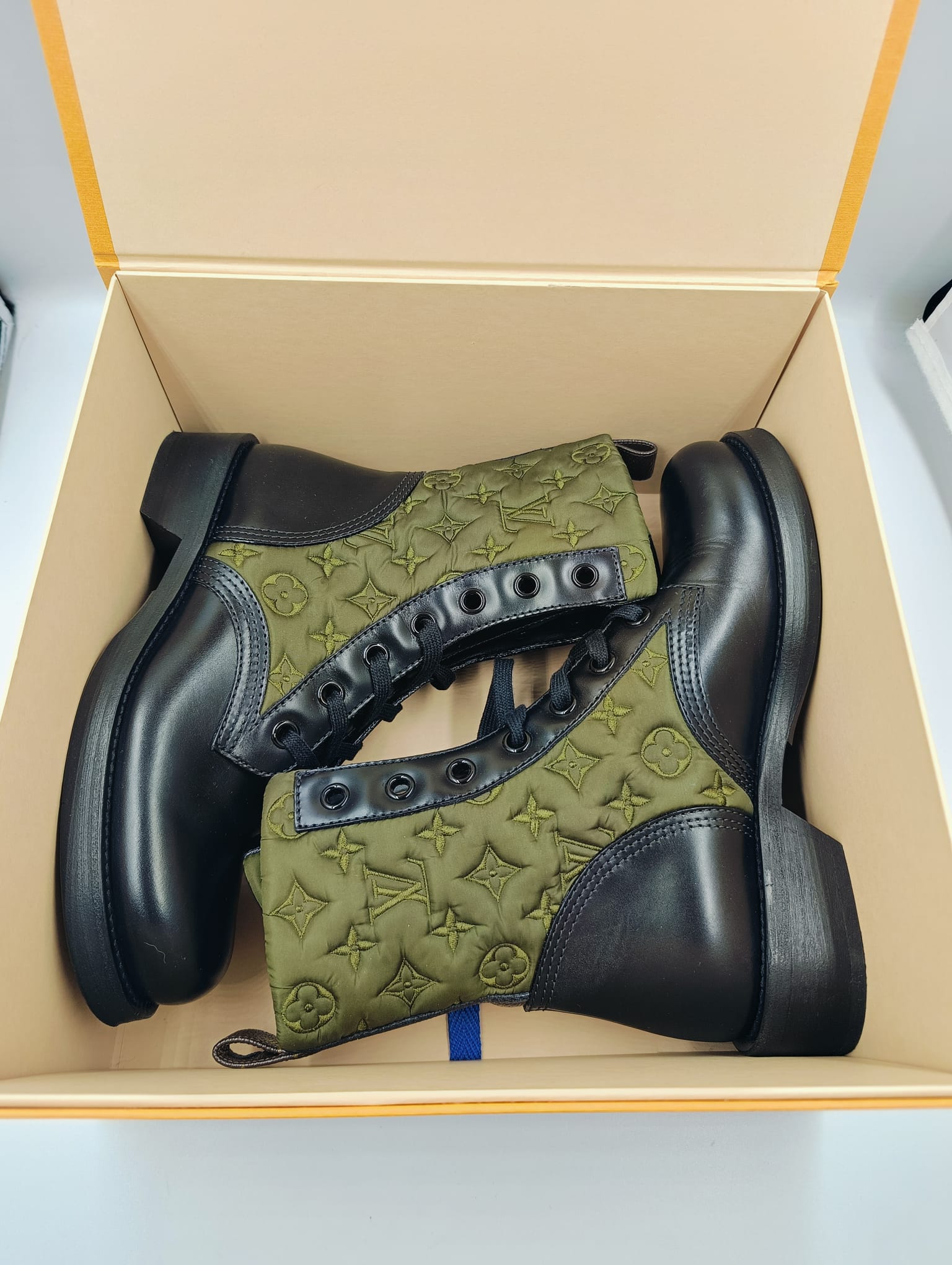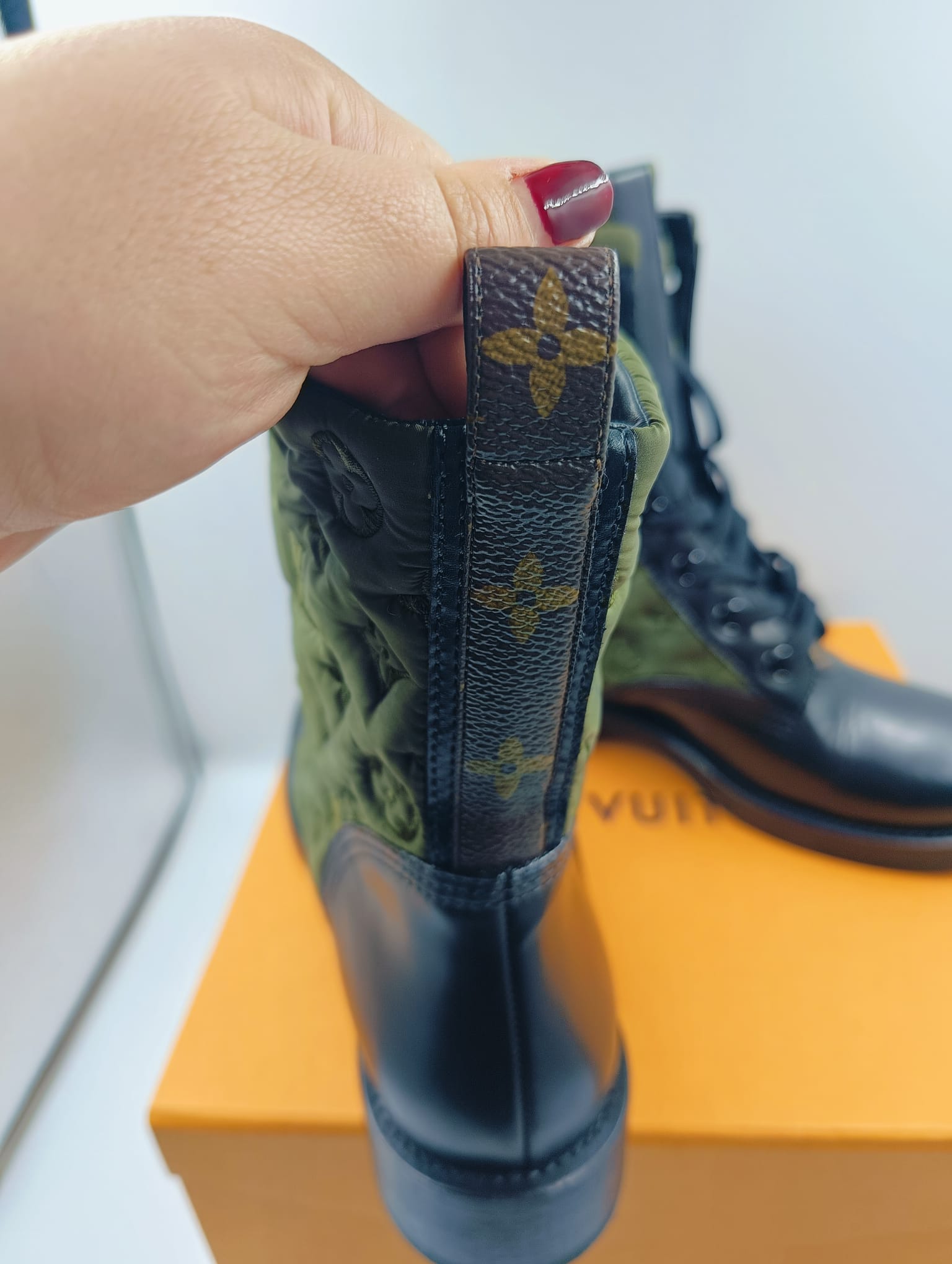 Stivali Luois Vuitton in tela e pelle , color kaki.