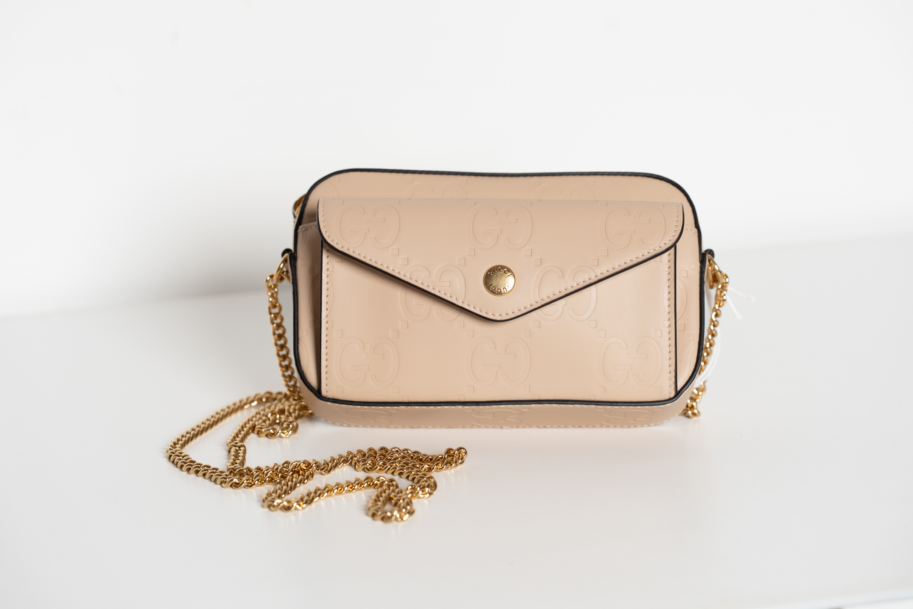 Dettagli logo, una tasca esteriore con bottone automatico.